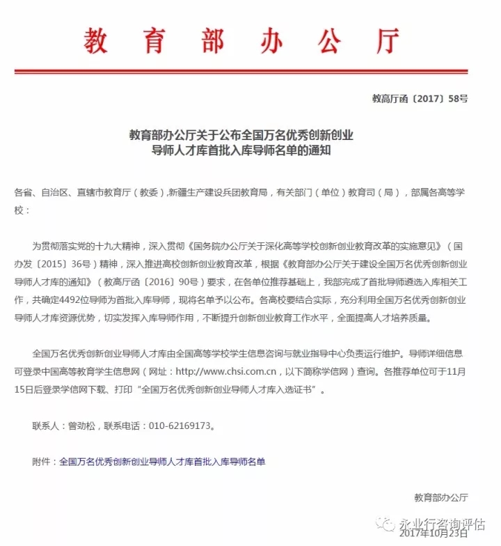 近日,教育部官网公布了全国万名优秀创新创业导师人才库首批入库导师名单,共确定4492位导师为首批入库导师。其中,由华中农业大学推荐入选的共有30人,永业行总裁潘世炳入选在列。