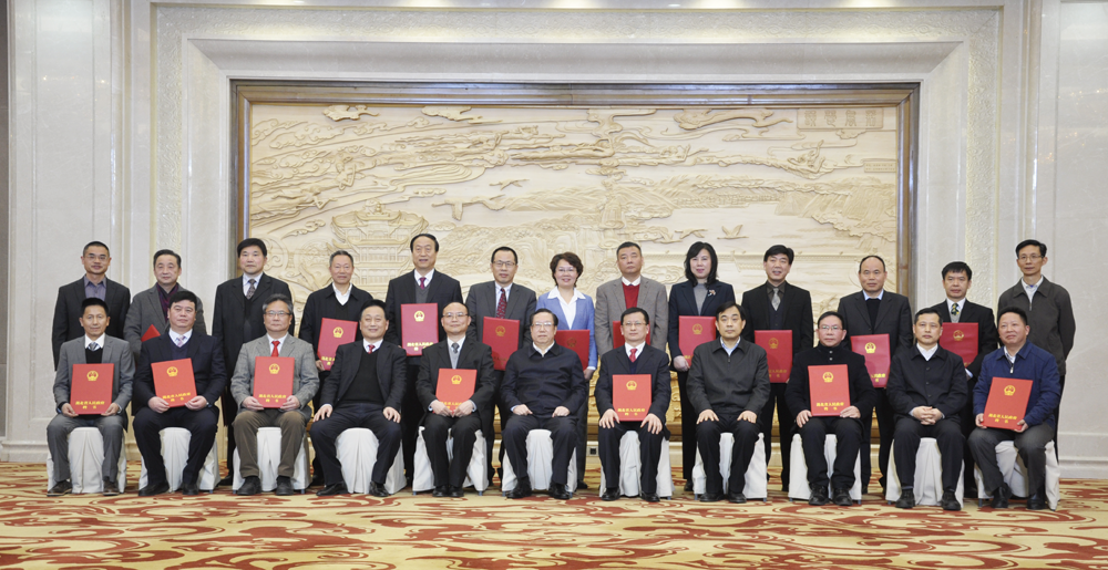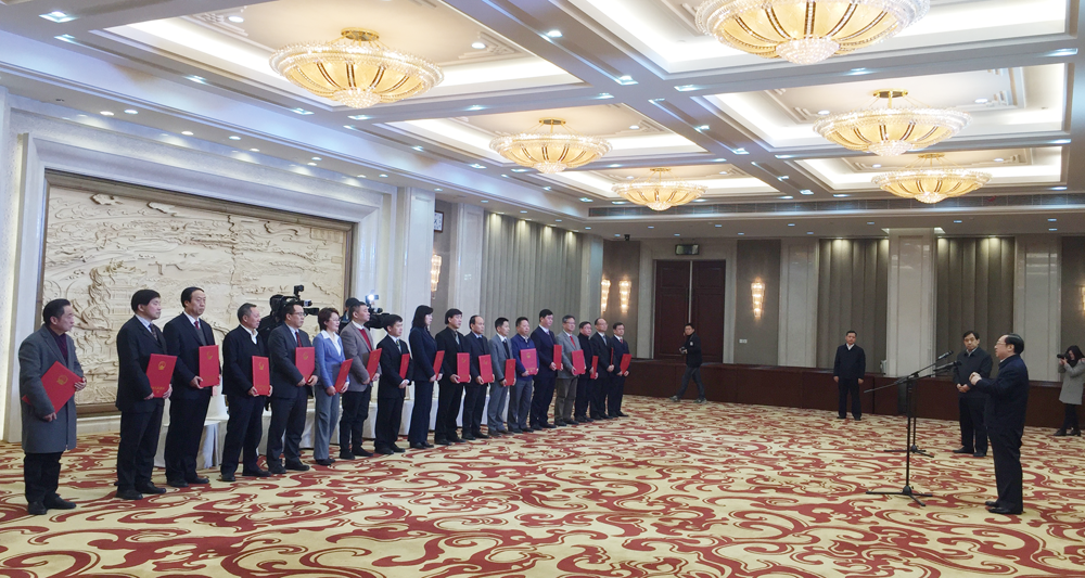 湖北省省长王晓东为潘世炳等19名新参事颁发聘书