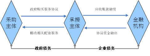 政府购买棚改服务可以理解为政府作为买方向棚改承接主体购买服务,平台再以所签协议中政府的应收账款向金融机构融资,政府按项目支出逐年纳入财政预算并按时支付购买资金,而平台公司在获取资金后归还贷款,最终实现项目资金的平衡。