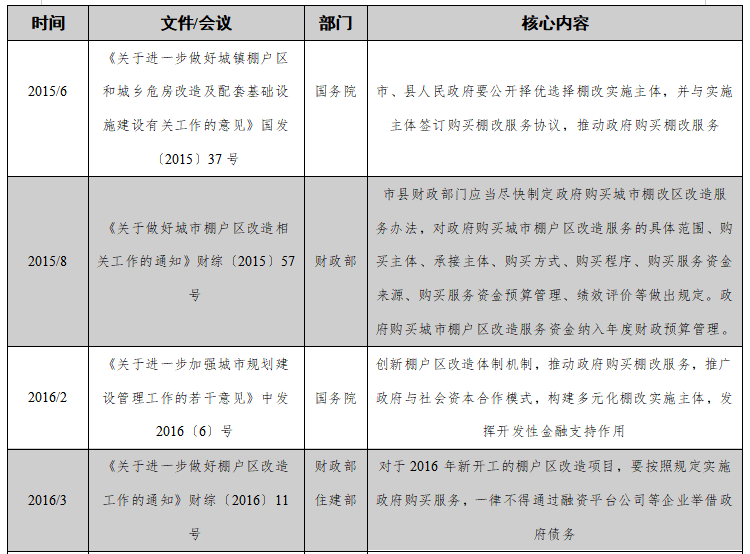 表1:政府购买棚改服务政策一览