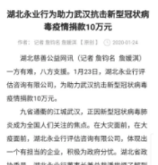 “疫情当前,没有谁是局外人。作为一名新的社会阶层人士,取之社会,理应为国家贡献一份力量。”湖北省政协委员,新的社会阶层人士,永业行咨询评估机构董事长兼总裁潘世炳如是说。在抗疫工作中,他带领的永业行是响应最早、驰援行动最频繁的专业服务机构。
