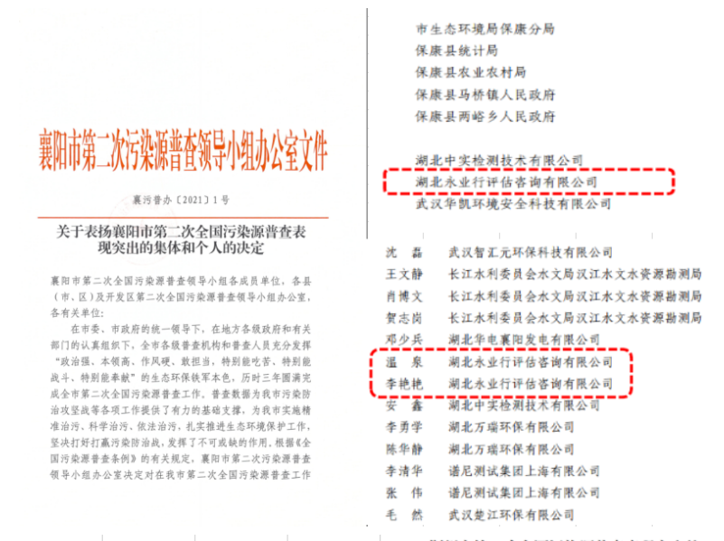 全国第二次污染源普查(以下简称“二污普”)是一项调查重大国情省情的基础工作,是推进生态环境保护的重要举措。自2017年开始,永业行“二污普”永业行承接了湖北省武汉市、荆州市、襄阳市、咸宁市、恩施州等18县(市、区);海南省三亚市、文昌市等6市县区普查工作。其中参与入户7个,参与质量评估17个,合计24个地区。团队历时三年,以专业的技术服务,高质量完成普查工作,为加强污染源监管、改善环境质量、防控环境风险、服务环境与发展综合决策提供了重要依据,获得上级普查机构的认可,受到国家、省市普查办发文表扬,服务的市县更是获得国家和省多项表现突出集体和个人的表扬。