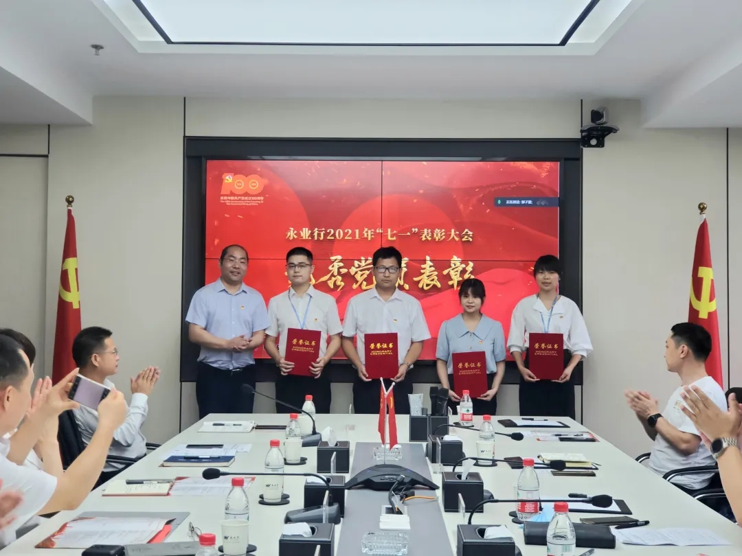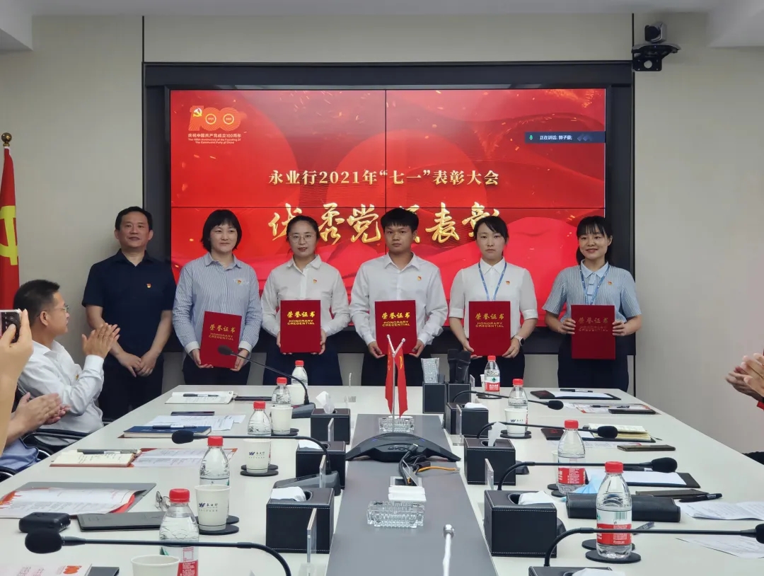 六月骄阳红似火,党旗猎猎风正劲。2021年6月16日下午,永业行在绿地铭创办公区隆重召开庆祝建党100周年暨“七一”表彰大会。武昌区委常委、统战部部长胡勇,区一级调研员、徐家棚街党工委书记刘晓明,区委统战部副部长、工商联会员企业党委书记陆峰,区工商联副主席赵显臣等领导莅临指导。永业行党委书记、董事长潘世炳,党委委员、副总裁雷小军、文云波,轮值总裁王琴及16个党支部党员代表共计300余人通过线上线下参加会议。党委委员、副总裁吴学锋主持会议。