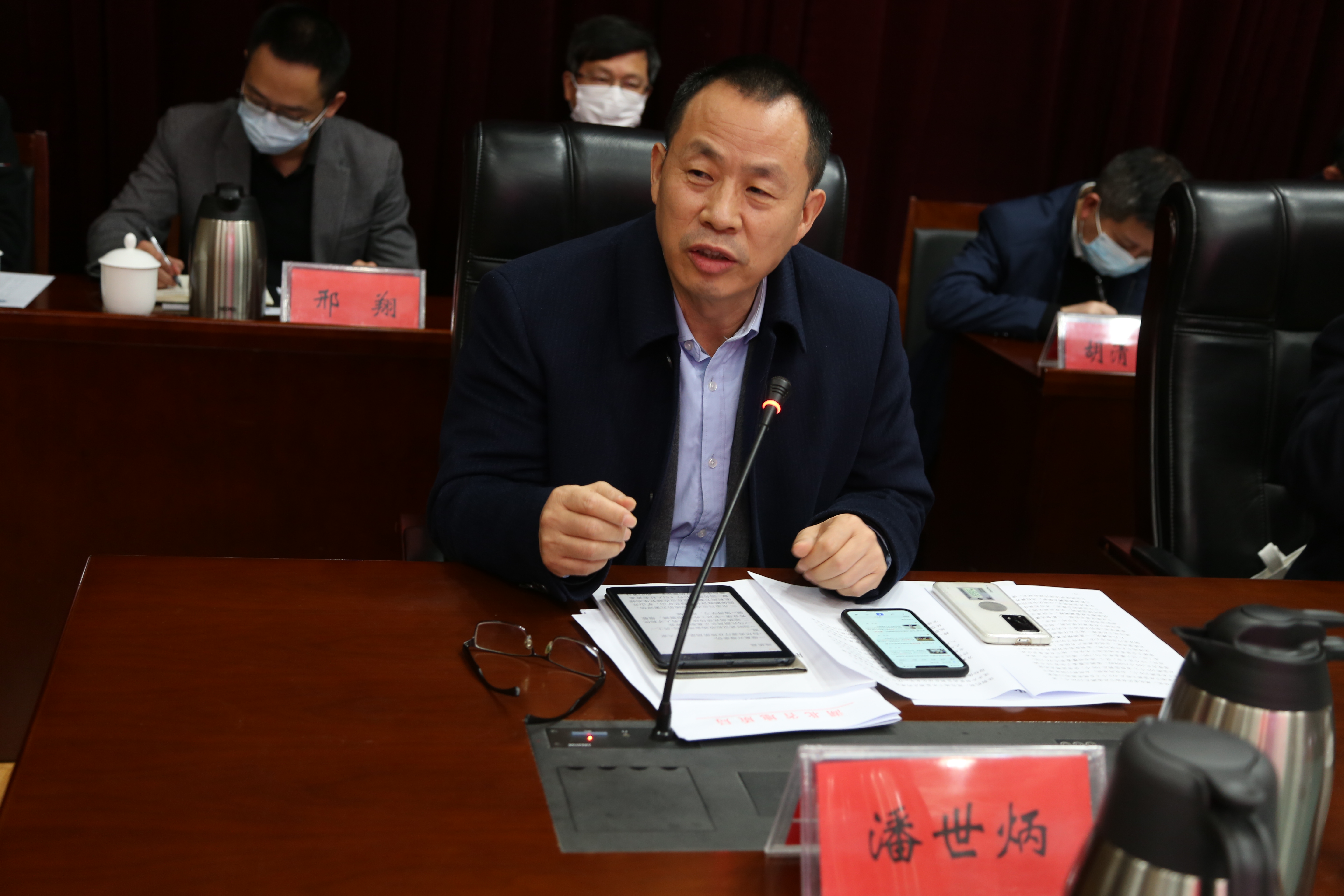 2022年3月21日上午,湖北省政协副主席杨玉华率调研组赴湖北省地质局,听取省地质局近年来工作亮点及2022年重点工作安排情况,了解我省长江汉江流域废弃露天矿山生态修复工作方面存在的问题及对策。省政协委员、永业行董事长潘世炳参加调研座谈。