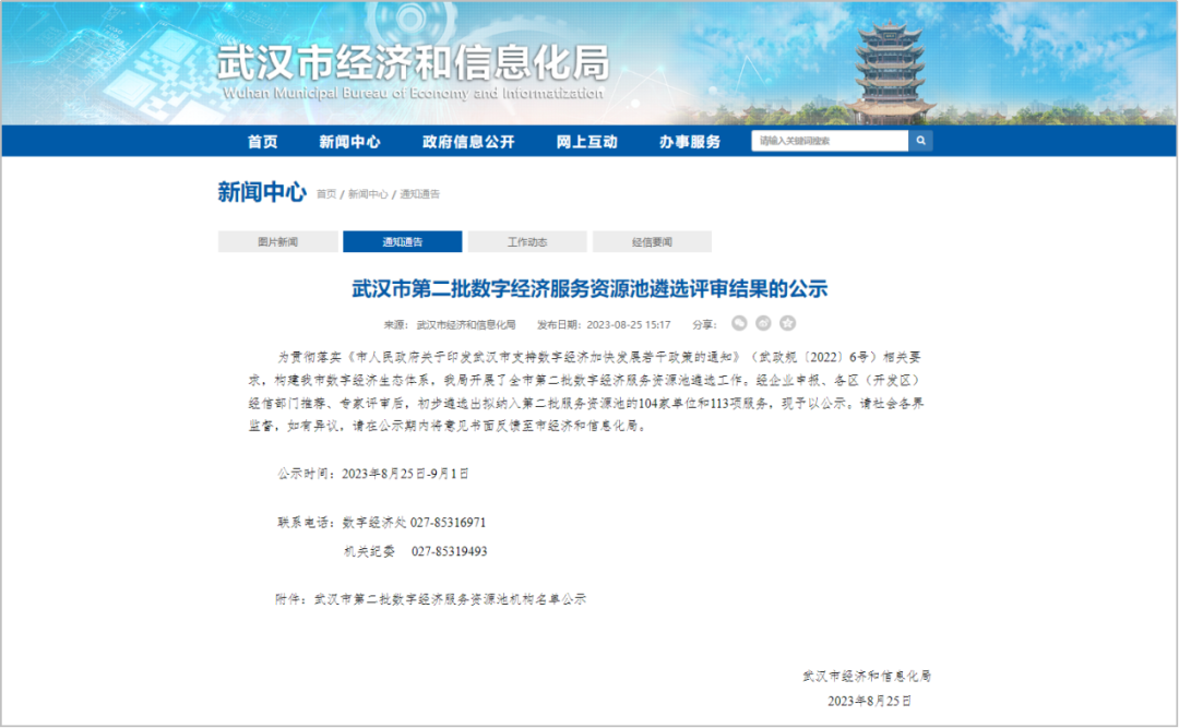 近日,武汉市经济和信息化局公布第二批数字经济服务资源池遴选工作评审结果,湖北永业行评估咨询有限公司自主研发的《乡镇生活污水治理项目绩效管理信息平台》成功入选。