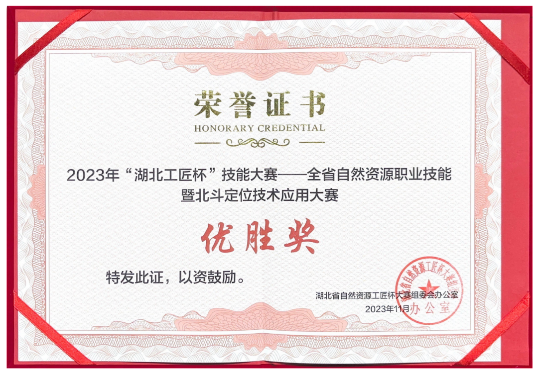 2023年“湖北工匠杯”技能大赛--全省自然资源职业技能暨北斗定位技术应用大赛优胜奖