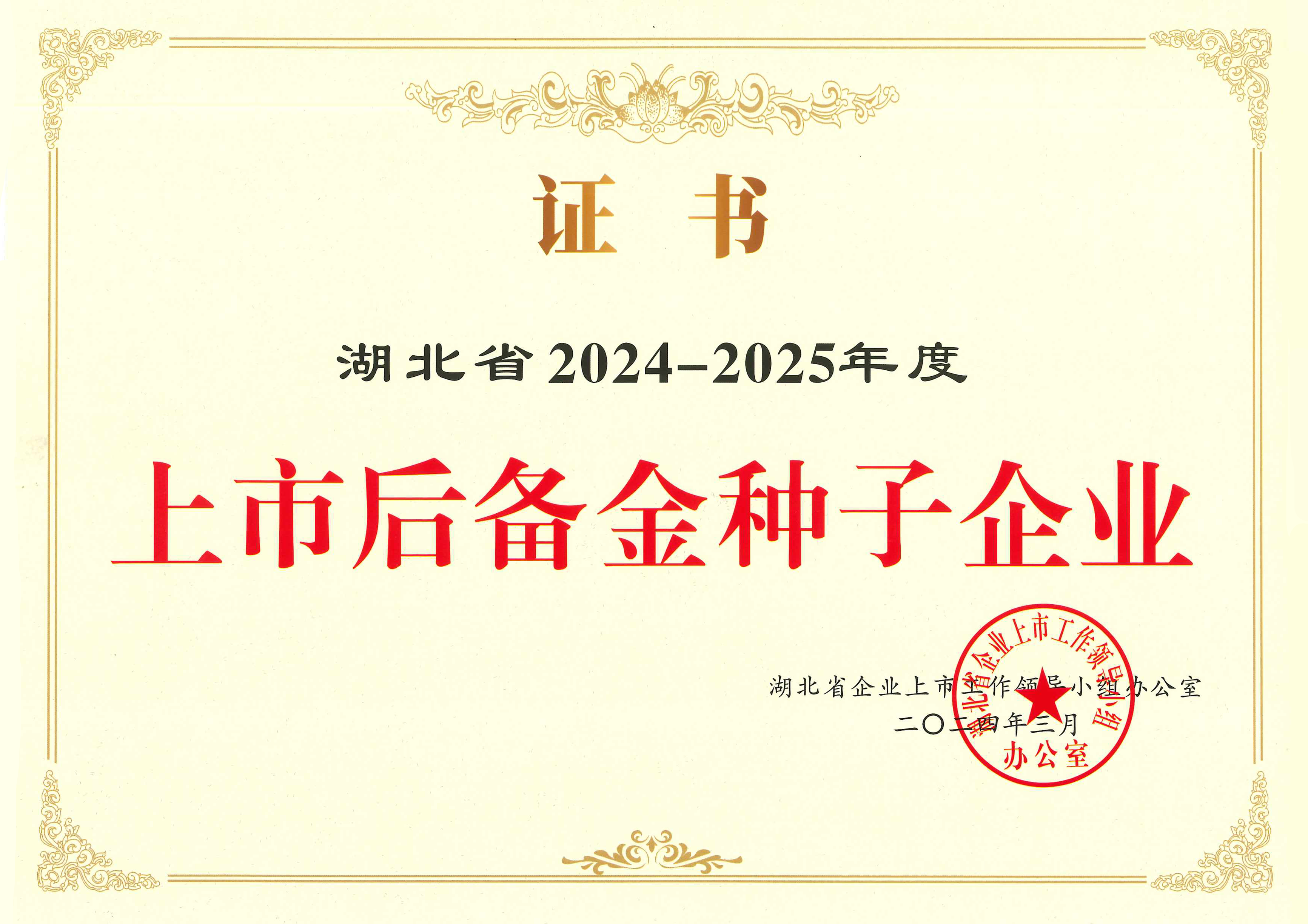 湖北省2024-2025年度上市后备金种子企业