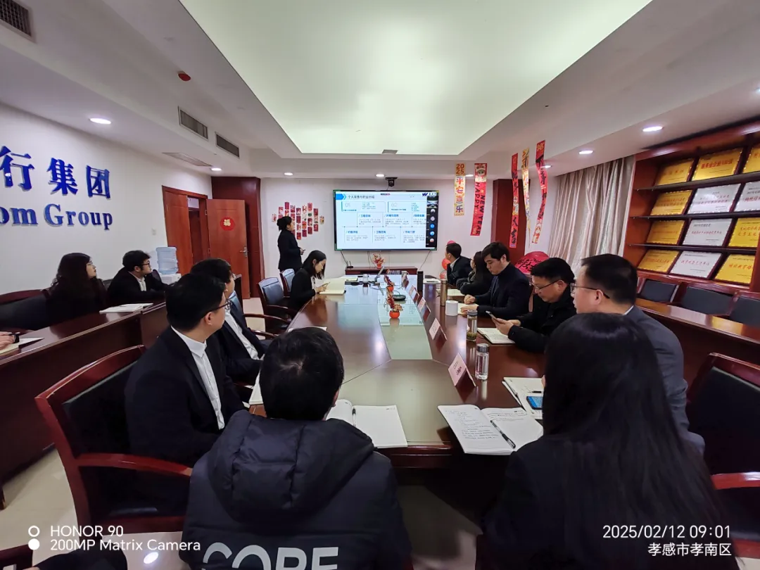 2025年2月12日,孝感分部举办市场和技术管理岗位竞聘会。永业行常务副总裁吴学锋,联席总裁王琴,部分业务部门、职能部门代表,以及分部执行董事张立胜、总经理梁小虎等20余人通过线上、线下形式参会。