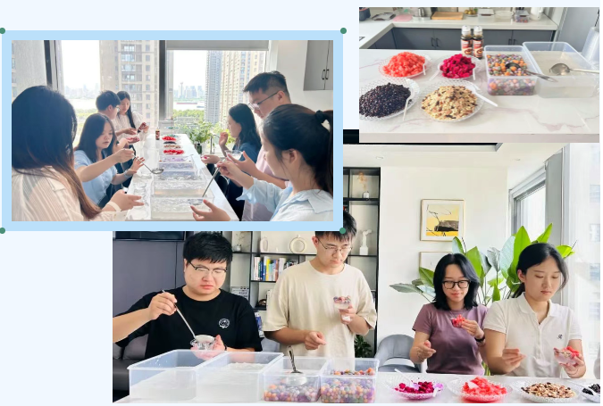 7月25日下午,绿地铭创11楼茶水间摇身一变成为“甜蜜工坊”,一场欢乐的冰粉DIY大作战带你解锁夏日清凉!