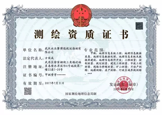 近日,经国家测绘地理信息局审批,永业行测绘资质升级为全国甲级测绘资质。