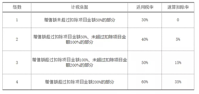 土地增值税税率表