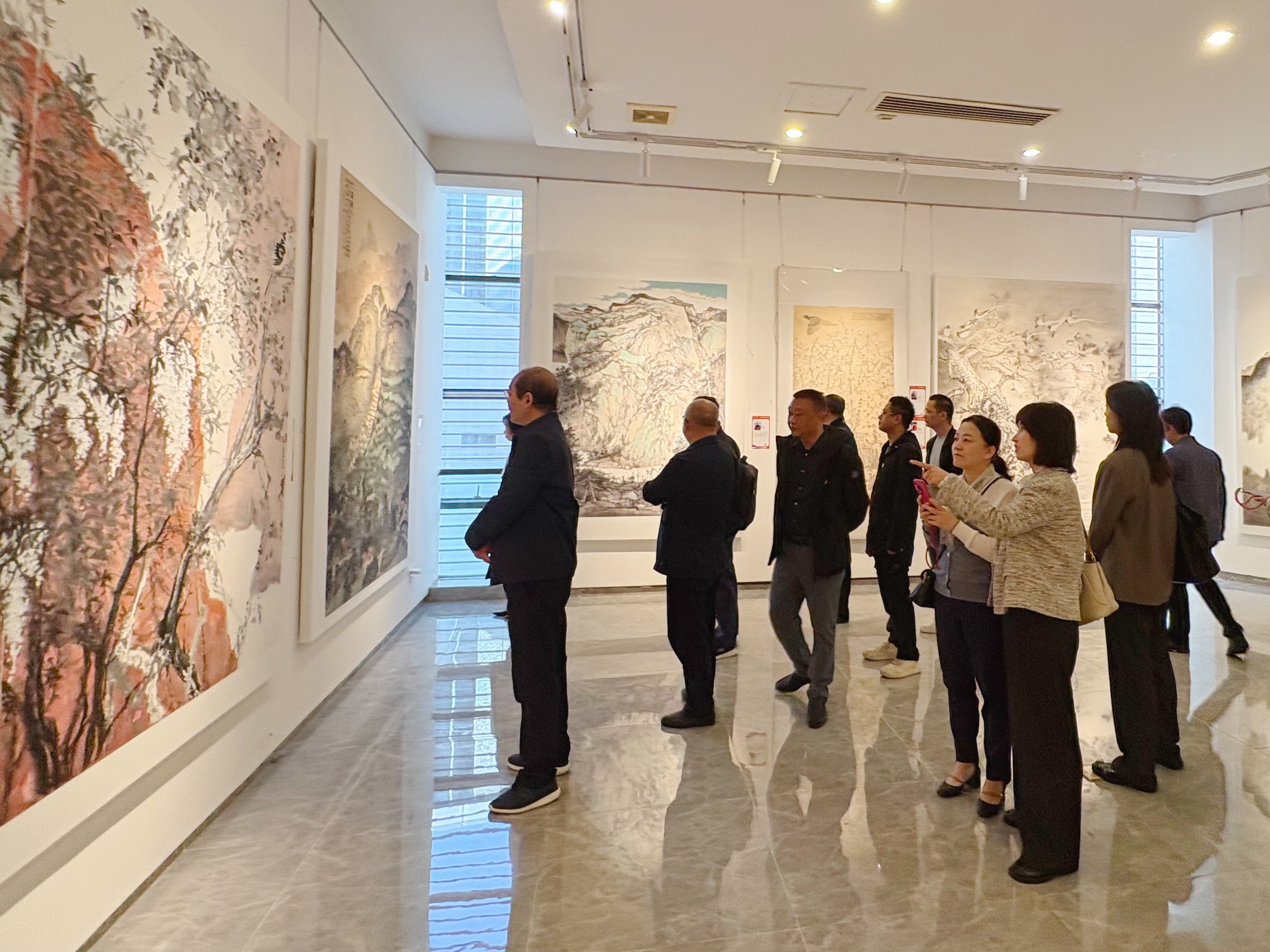 2024年10月25日,中共湖北永业行委员会组织开展2024年第四季度“凝聚新力量·筑梦新时代”主题教育活动,赴中南民族大学参观“艺心向党”——庆祝中华人民共和国成立75周年湖北新的社会阶层人士美术展。展会由中共湖北省委统战部、湖北省文学艺术界联合会、中南民族大学指导,新的社会阶层人士服务团“艺心向党”书画组委会、湖北省新的社会阶层人士联谊会、湖北省美术家协会共同举办。受永业行党委书记、董事长潘世炳委托,党委委员、常务副总裁吴学锋带领各支部书记、党员代表参加活动。